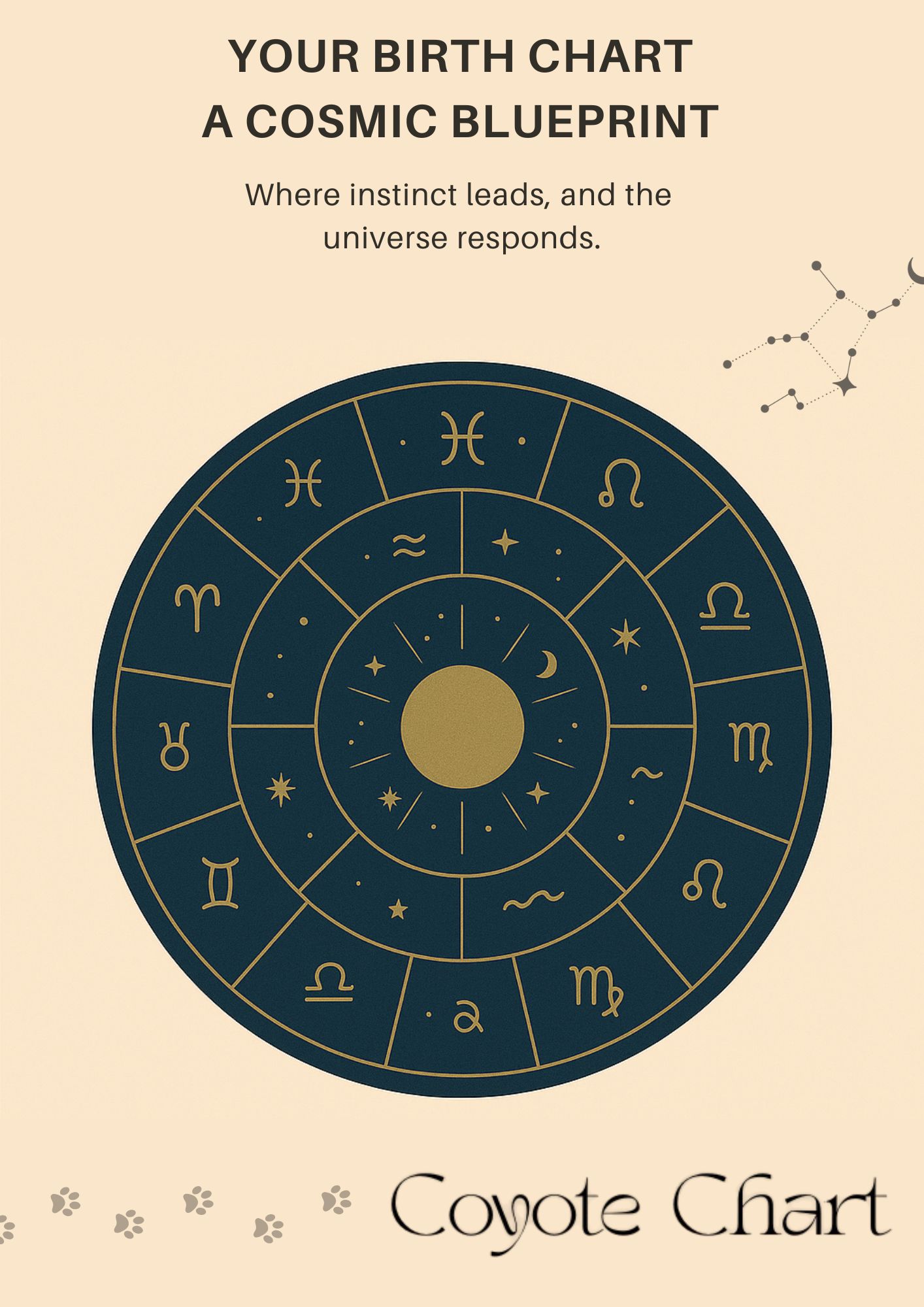 At Coyote Chart, we go beyond generic astrology. Using your precise birth time and location, we create a chart that’s as instinctive as you are—a personal cosmic blueprint designed to reveal your path, patterns, and purpose